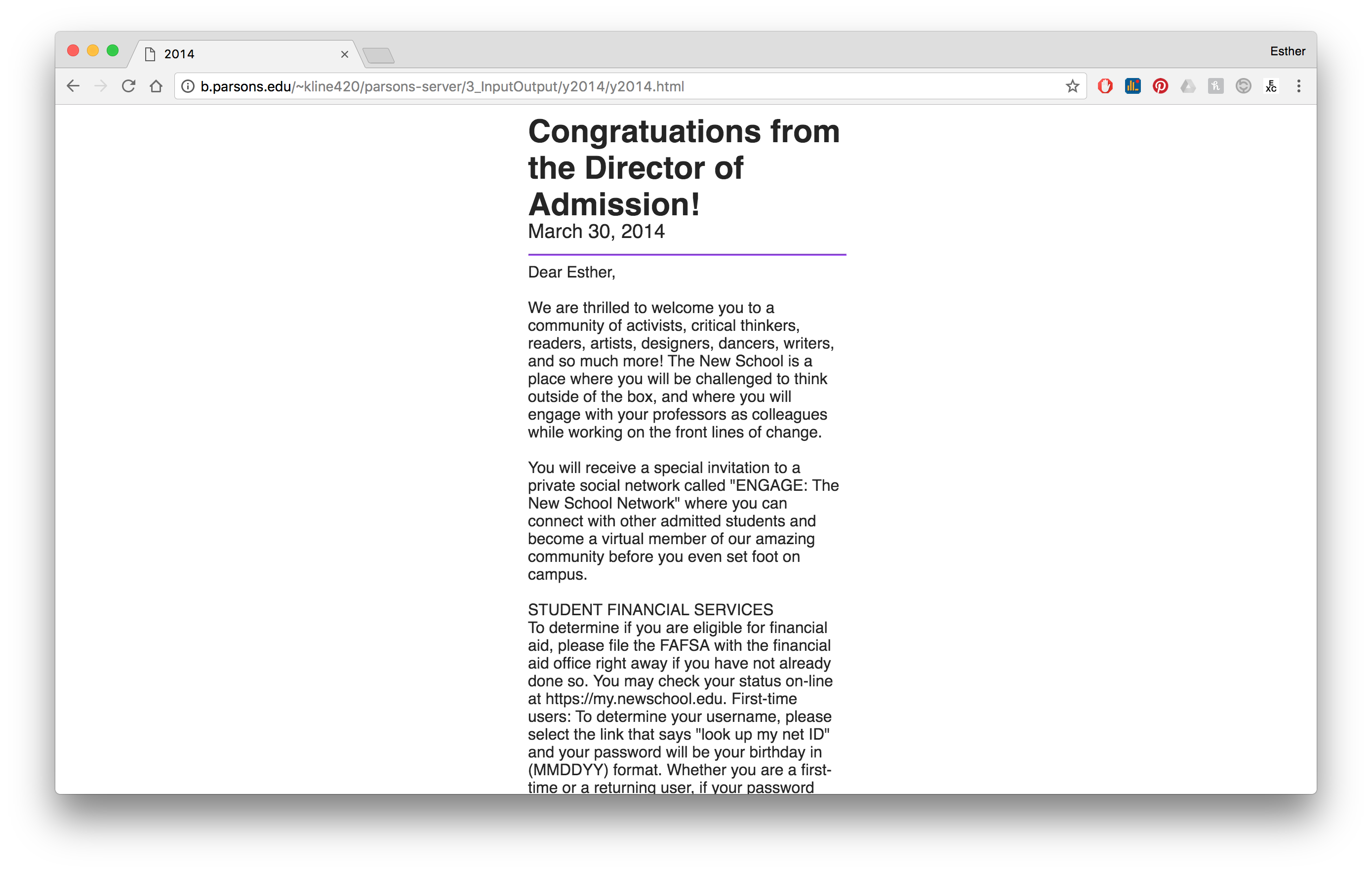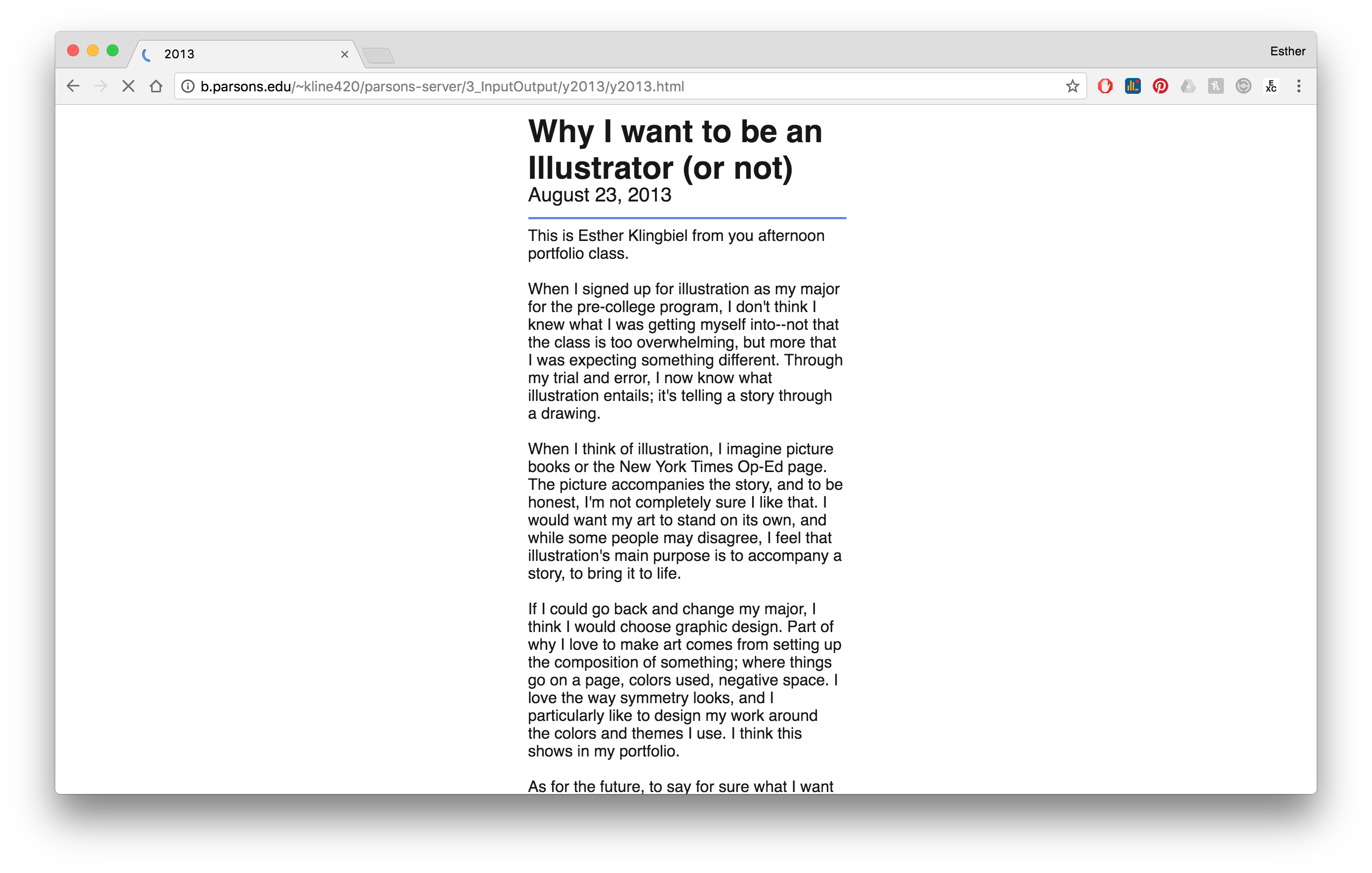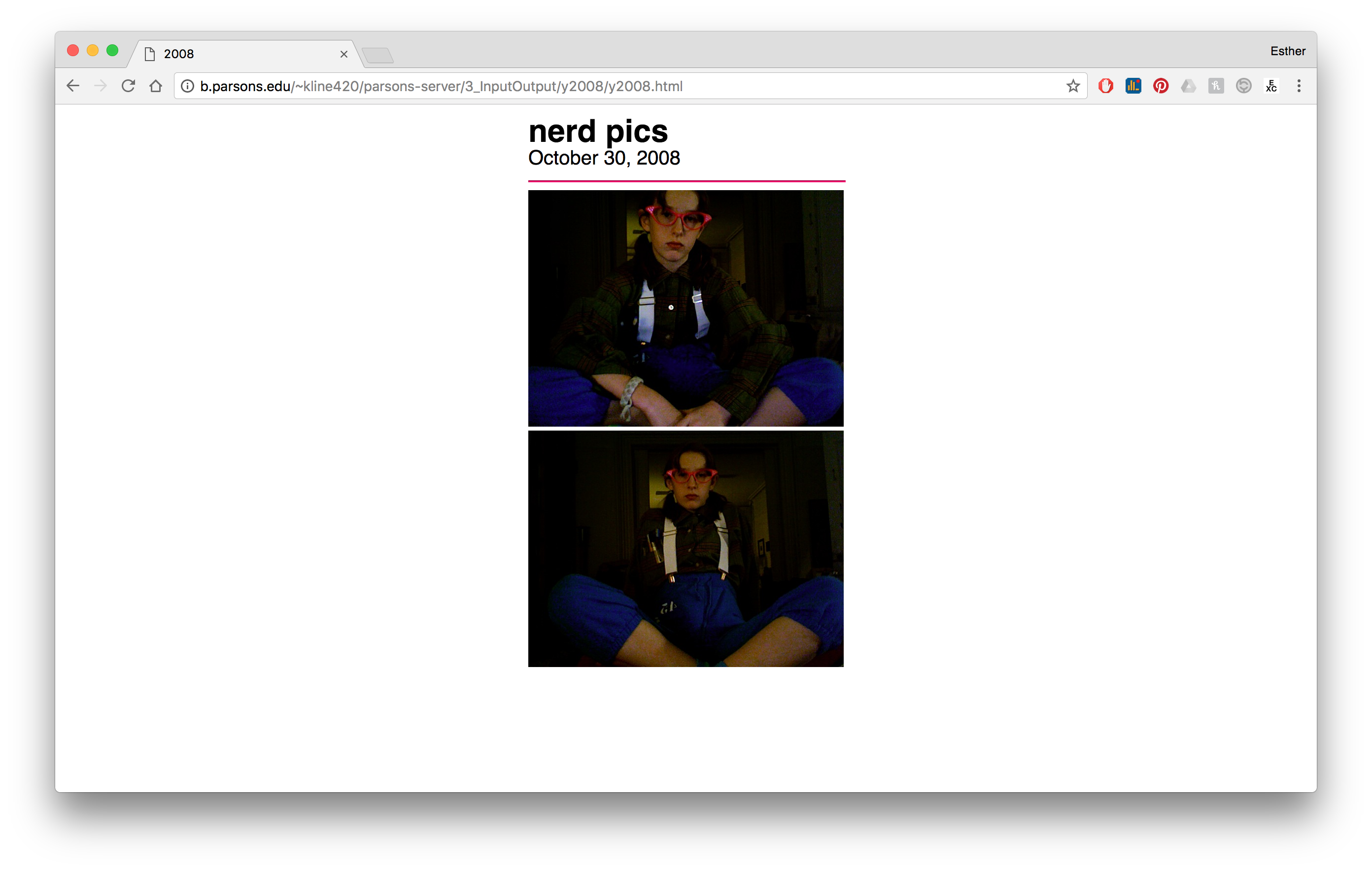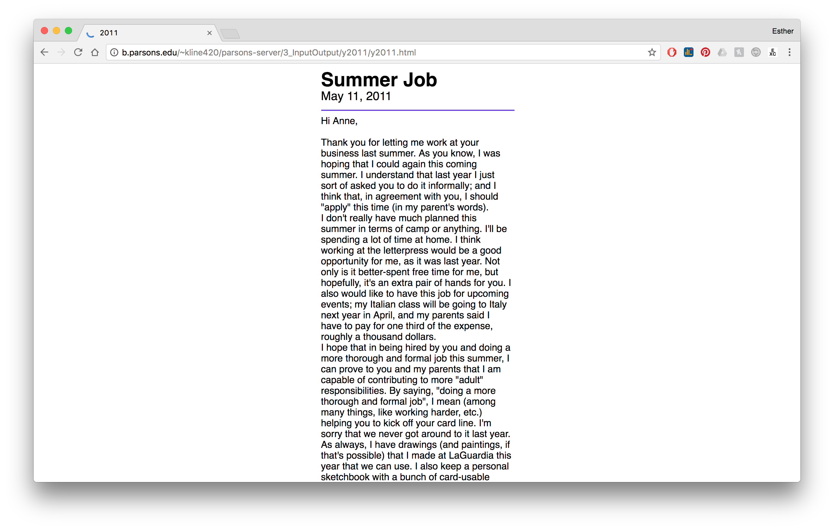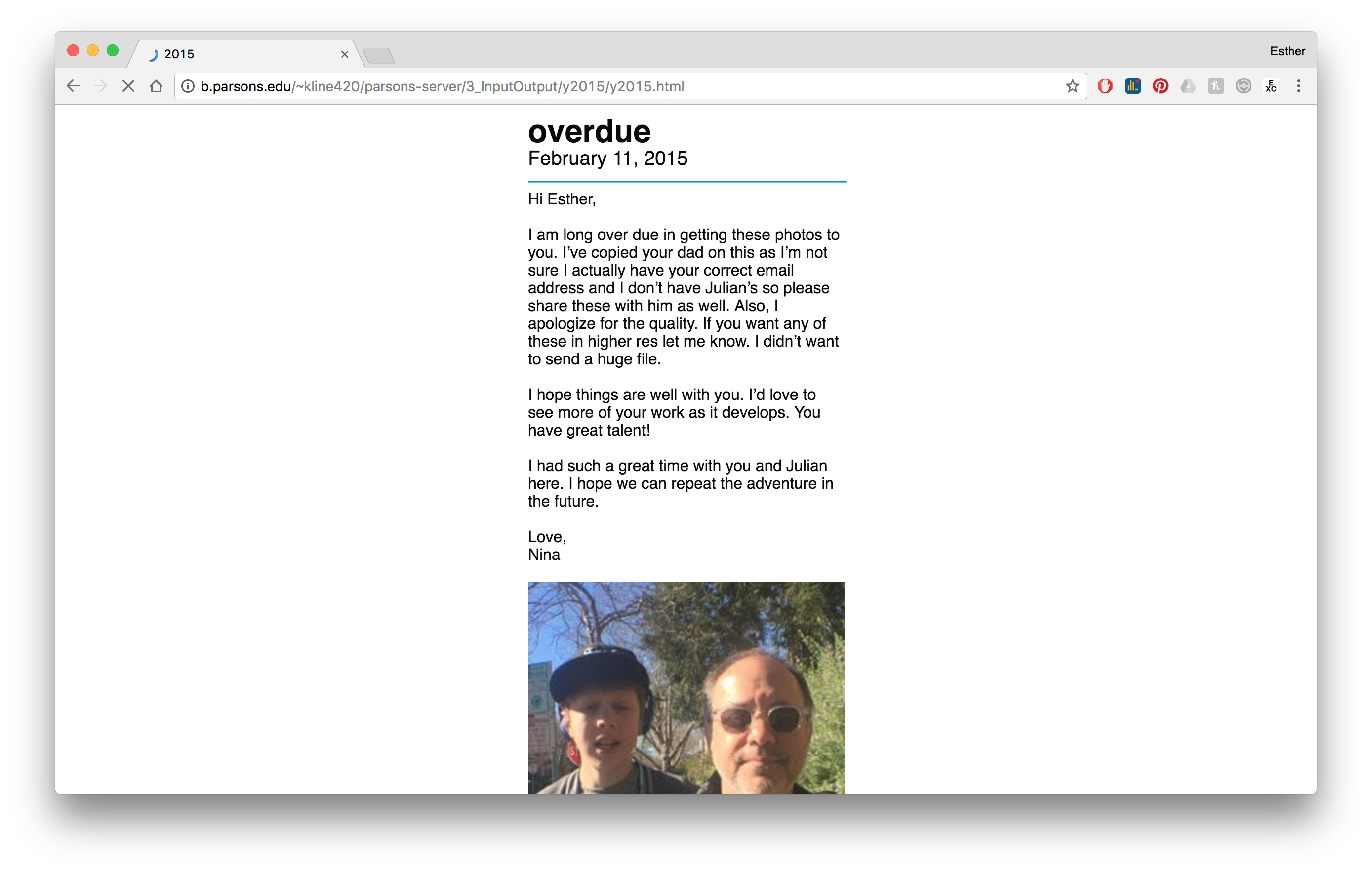 Each year contains three emails I sent that load randomly (when you refresh the page, another randomly chosen email appears).