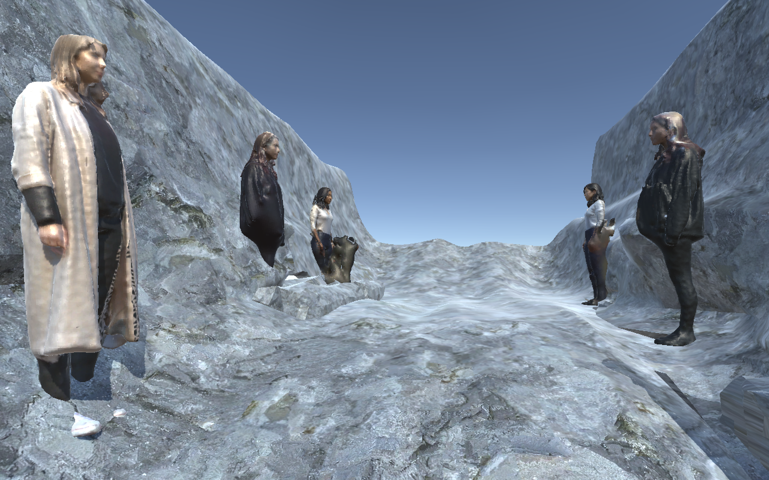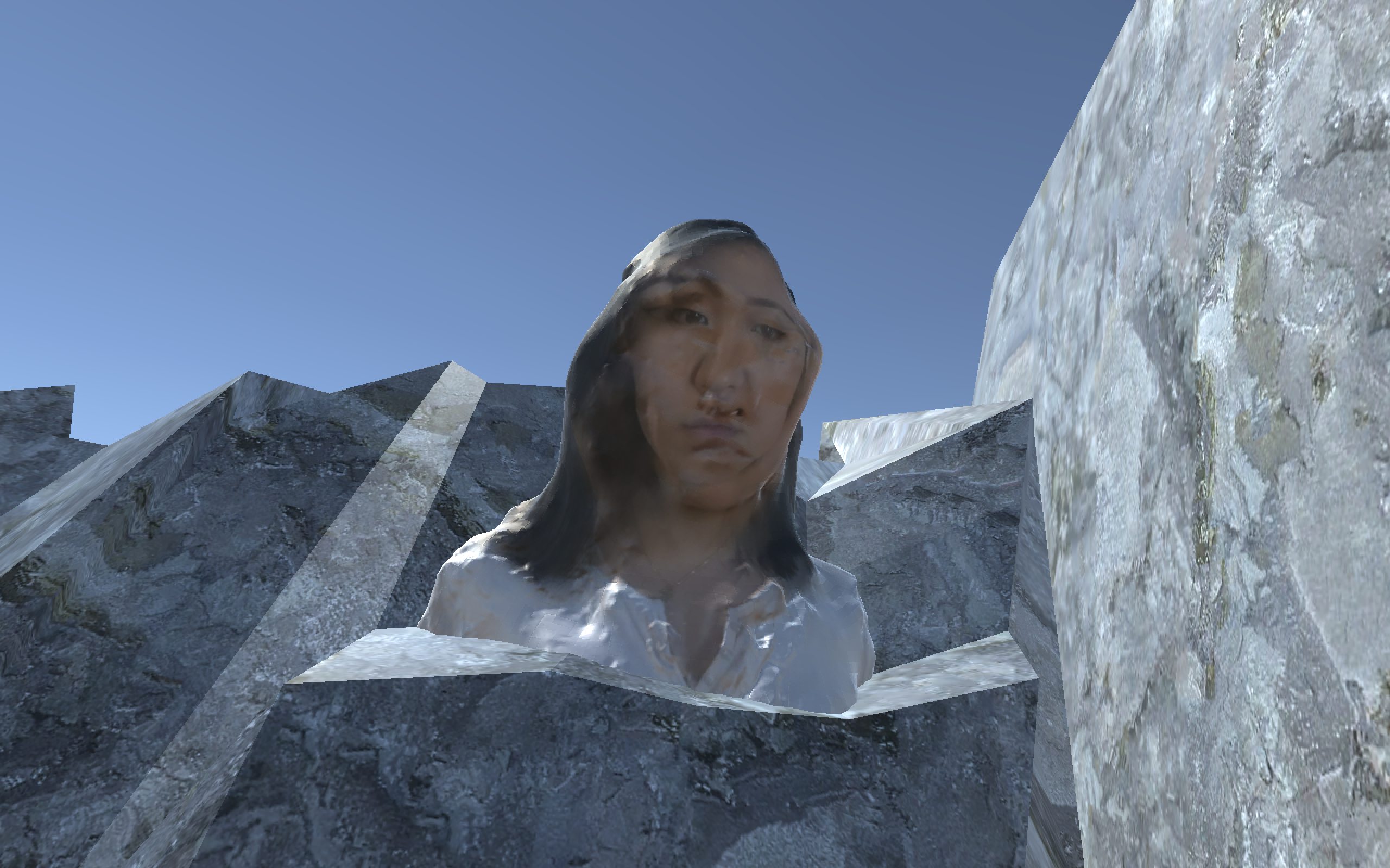 The goal of this project was to capture the uncanny valley in the realm of a navigable, 3D environment using 3D scanning techniques, photogrammetry, and rending software (Blender, Unity). The uncanny valley is described as the feelings of revulsion and eeriness that human beings experience when confronted with an object that is highly realistic—yet not exact—in human form and characteristics.
