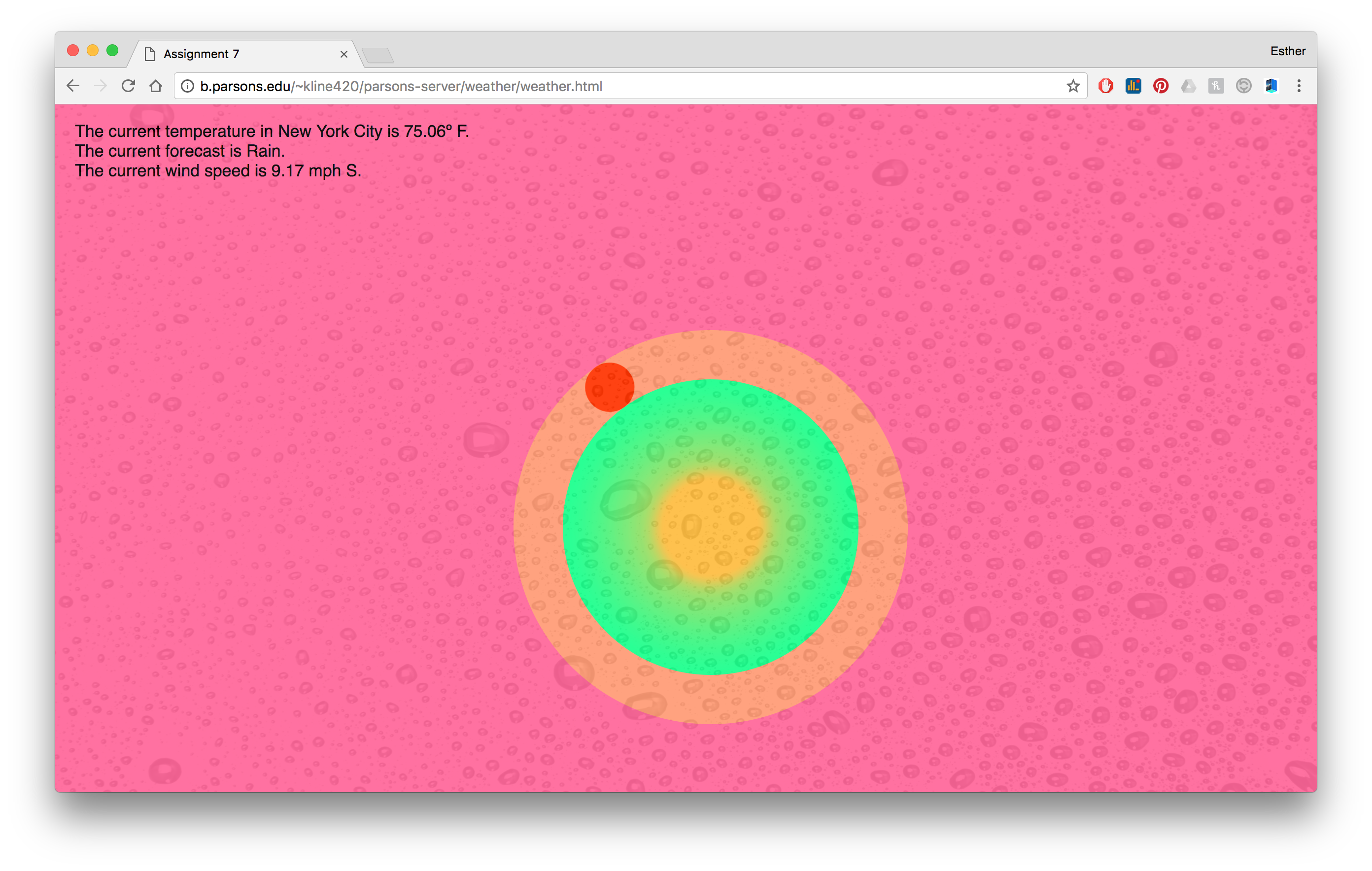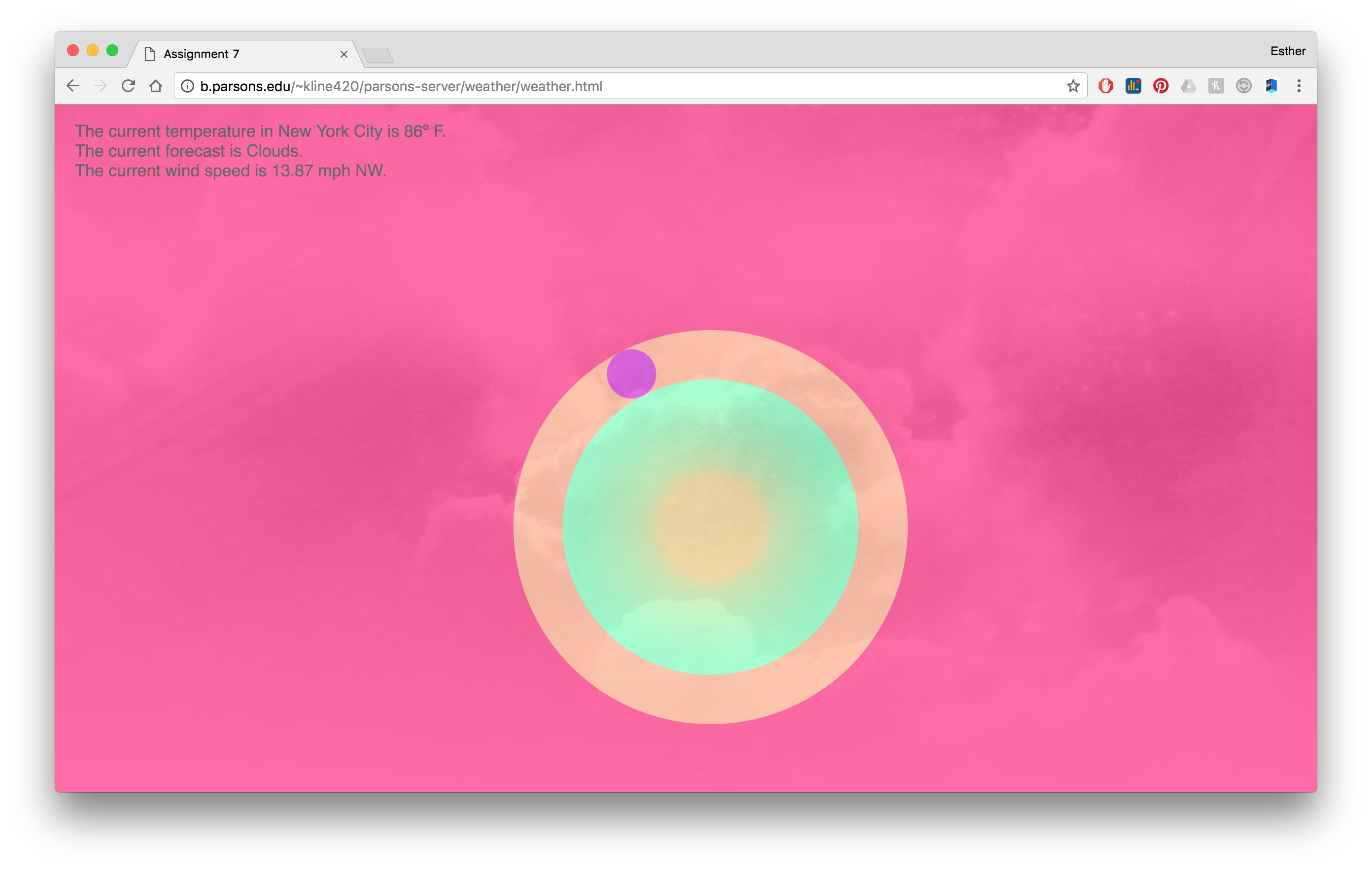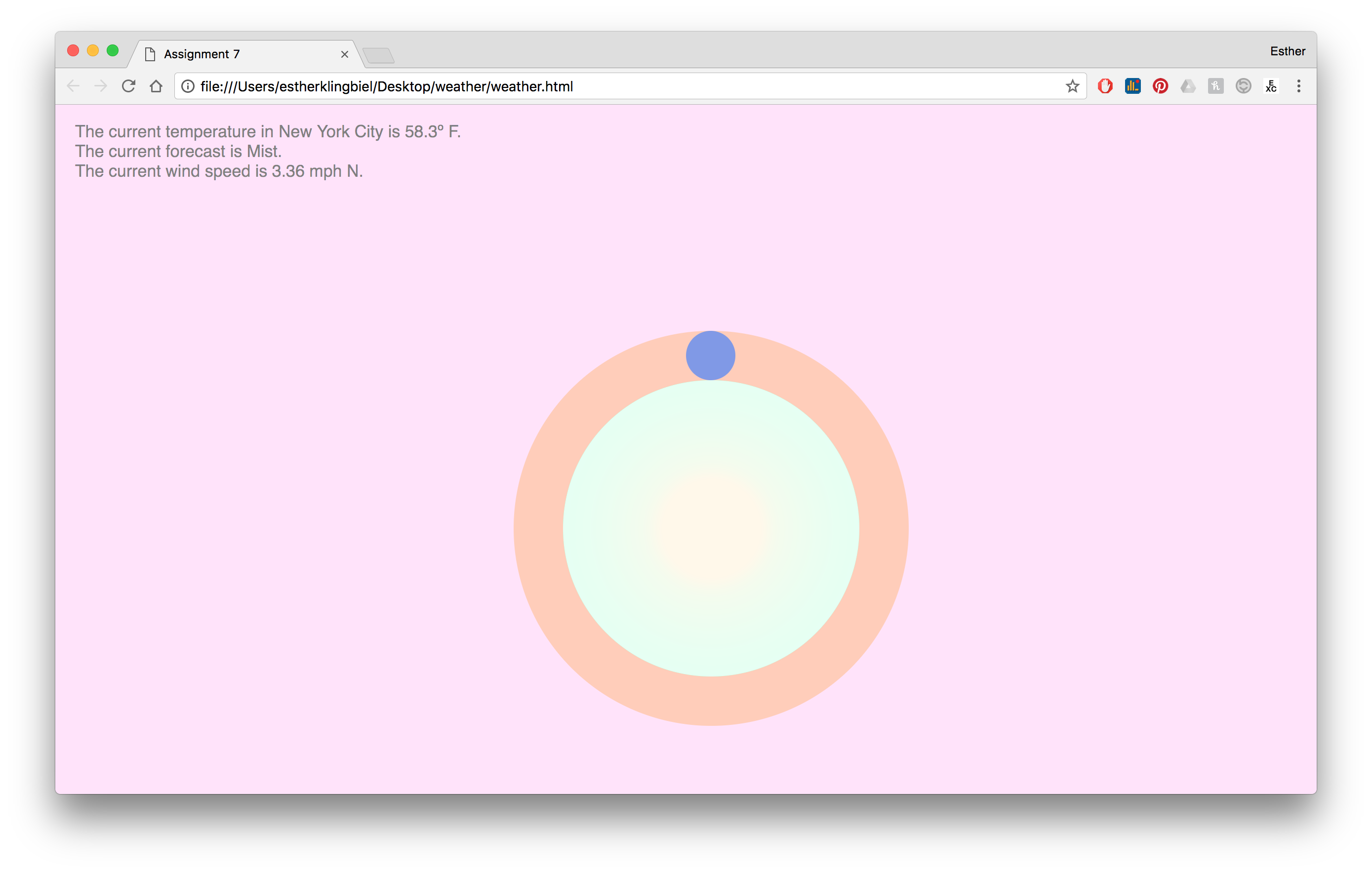 Using a weather API, this project visually represents the current weather in New York City through a concentric map.